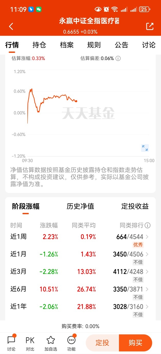 $永赢中证全指医疗器械ETF发起联接C$有回暖的趋势了,目前估值又是红的,看来今