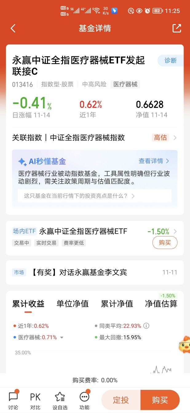 这个$永赢中证全指医疗器械ETF发起联接C$ 医疗器械行业被动投资基金,也是全市场首支跟踪医疗器械指数的链接基金,这里规模最大,涨势回来弹性也是极强,目前科技龙头企业已纷纷布局医疗领域,AI+医疗正处在快速发展期,趁着估值仍处于低位,倒是值得期待了,现在都多积累便宜筹码,未来上涨的时候才更香#创新药三连涨!医药商业狂飙#