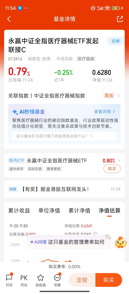 全市场估值最低的板块就是医疗领域,$永赢中证全指医疗器械ETF发起联接C$昨晚拉