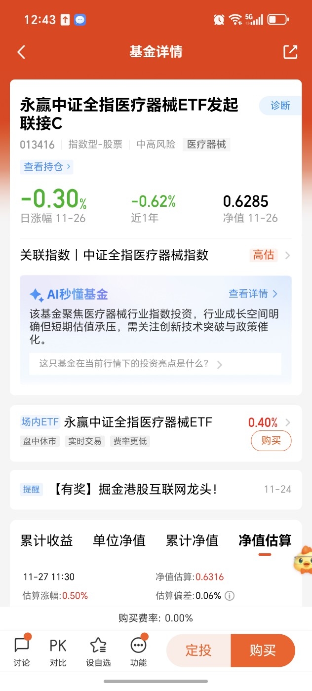 $永赢中证全指医疗器械ETF发起联接C$ 紧密跟踪中证全指医疗器械指数,覆盖了医疗设备、高值耗材、体外诊断等多个细分赛道。当前医疗器械正处于低位入局的好时机,为投资者收集优质筹码创造了有利条件,看好的可以跟上,保持低吸慢慢积累筹码也不错。#低估补涨号启航#