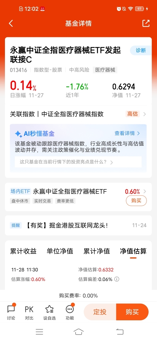 $永赢中证全指医疗器械ETF发起联接C$ 全市场首支,规模最大流动性最好,不能错过了布局机会,整体估值偏低,昨天涨幅0.14%,近六个月涨幅5.25%,医疗是刚需产业,AI浪潮来了,确实为 AI 医疗领域打开了全新的局面。目前我们期待这轮的AI浪潮推动医疗领域快步向前,并积极寻找其中的投资机遇。跟上步伐。#多重利好催化!新能源走强#