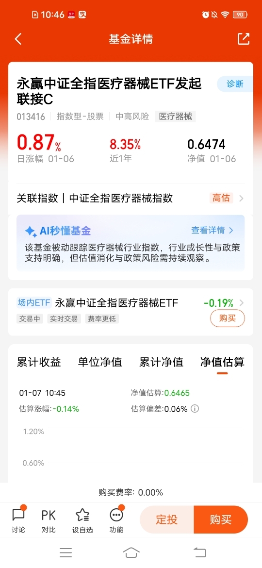 $永赢中证全指医疗器械ETF发起联接C$整体估值偏低,还是以收集筹码为主,昨天涨
