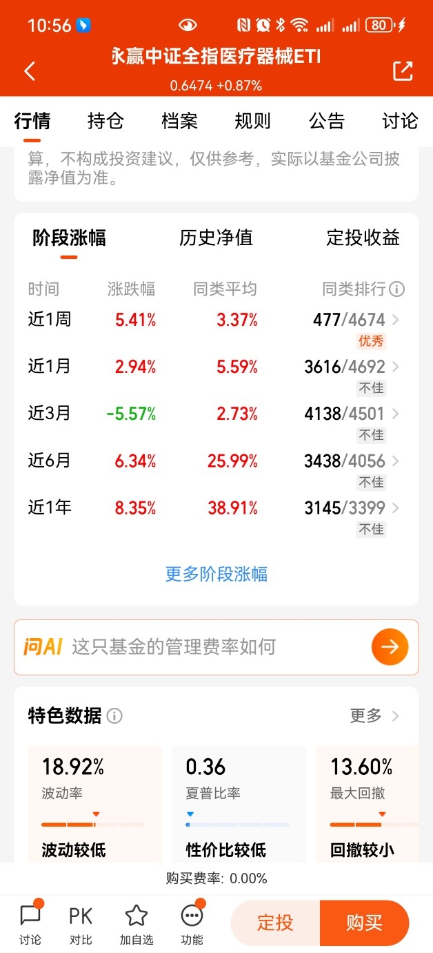 $永赢中证全指医疗器械ETF发起联接C$有震荡向上趋势了,前天更是大涨5个多点,