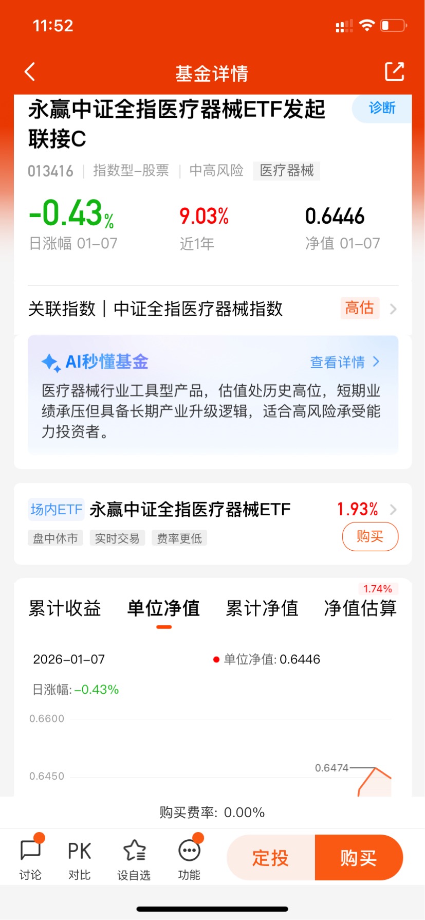 $永赢中证全指医疗器械ETF发起联接C$ 是一只被动跟踪医疗器械指数的基金,覆盖医疗设备、高值耗材等细分领域,受益于老龄化及国产替代趋势!今日医疗器械反弹,盘中涨超1%,当前美股脑机接口板块大涨,而永赢医疗器械是脑机含量最高的指数基,预感要有一波涨势回来啊,期待接下来的表现了!#2025超额关键词#