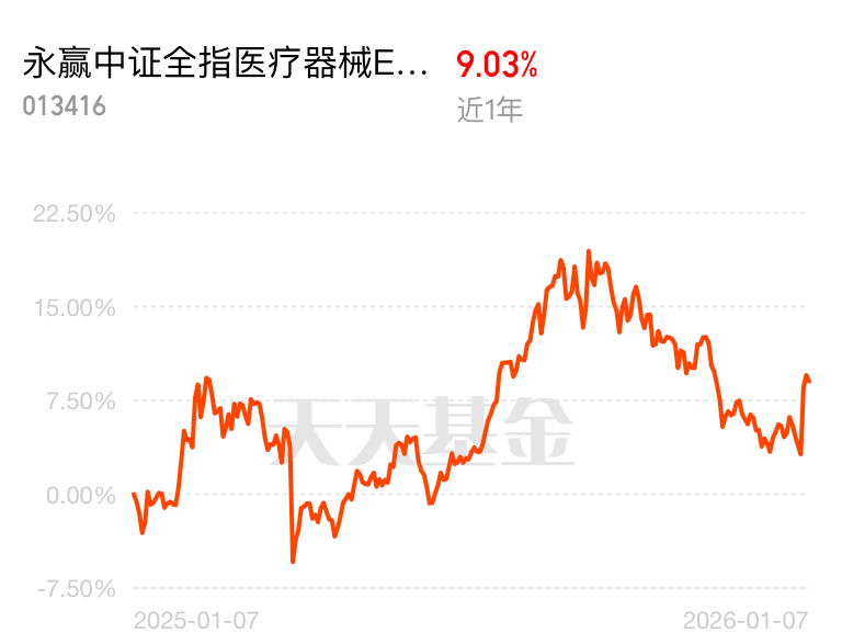 #晒晒我的2025投资战绩!# 随着人口老龄化带动慢病诊疗、康复器械需求增长,居民健康意识提升,家用医疗器械市场规模预计2025年突破800亿元,同比增长12%。$永赢中证全指医疗器械ETF发起联接C$ 近一周收益5.65%,近六个月收益6.35%;近一年收益9.03%;该基金前十大重仓股包括迈瑞医疗、联影医疗、爱美客等行业龙头,兼具传统优势企业与创新驱动型标的,攻守兼备;医疗器械板块正处于业绩与估值的双重拐点,未来将围绕创新驱动、高端化、国际化等方向发展。