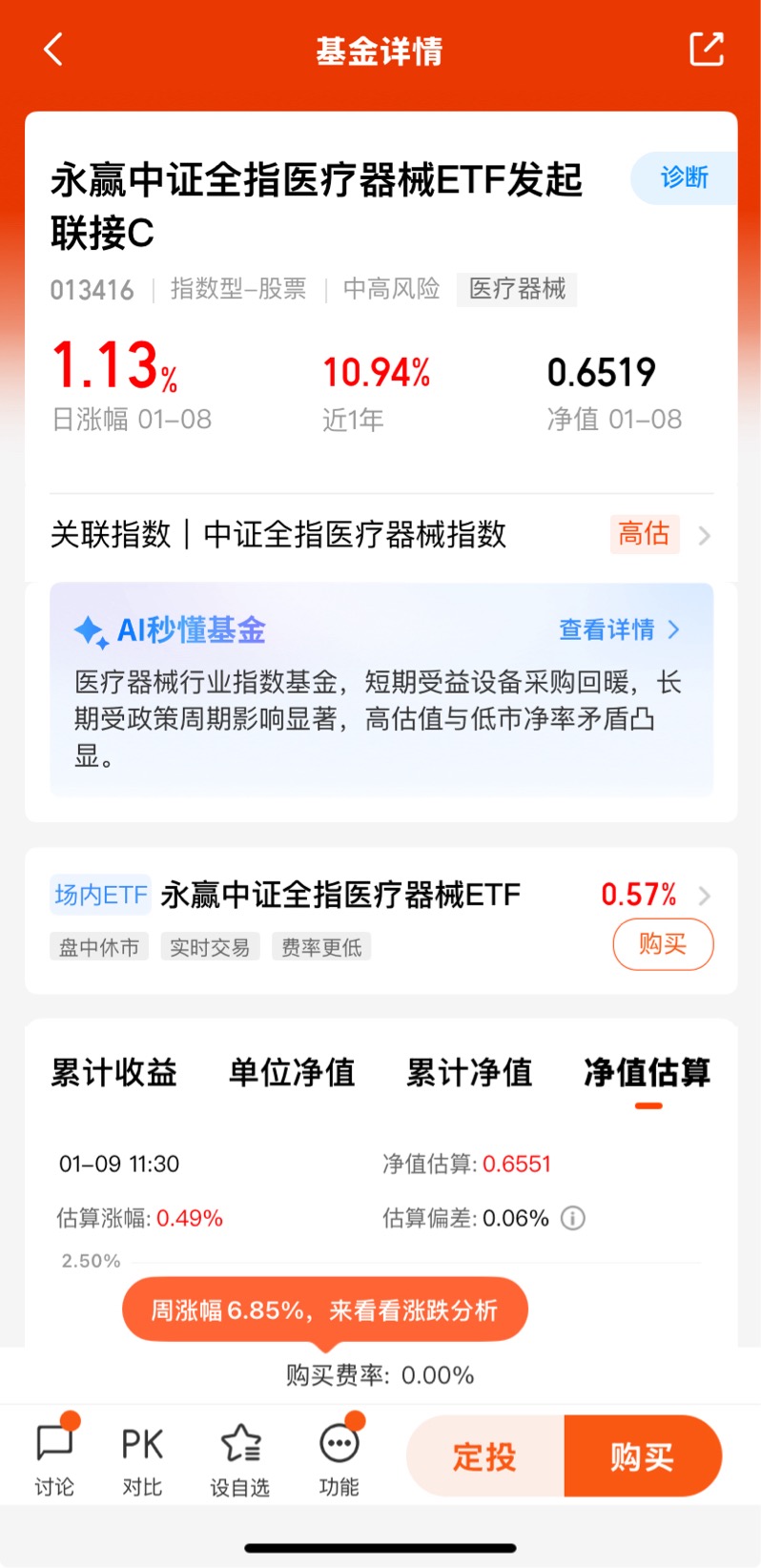 #2026我的新年投资计划# 25年11月“十五五”规划明确将脑机接口列为“六大未来产业”之一,确立其作为新质生产力核心方向的国家战略定位。说明了政策对相关技术发展的支持力度有多大。$永赢中证全指医疗器械ETF发起联接C$ 昨天上涨1.13%,近一周收益6.85%,近六个月收益7.19%;近一年收益10.94%;最近趋势不错;目前中高端医疗器械的国产化率相比于创新药仍有较大提升空间,随着技术的进步、以及鼓励国产的相关政策出台,医疗器械国产替代正加速。
