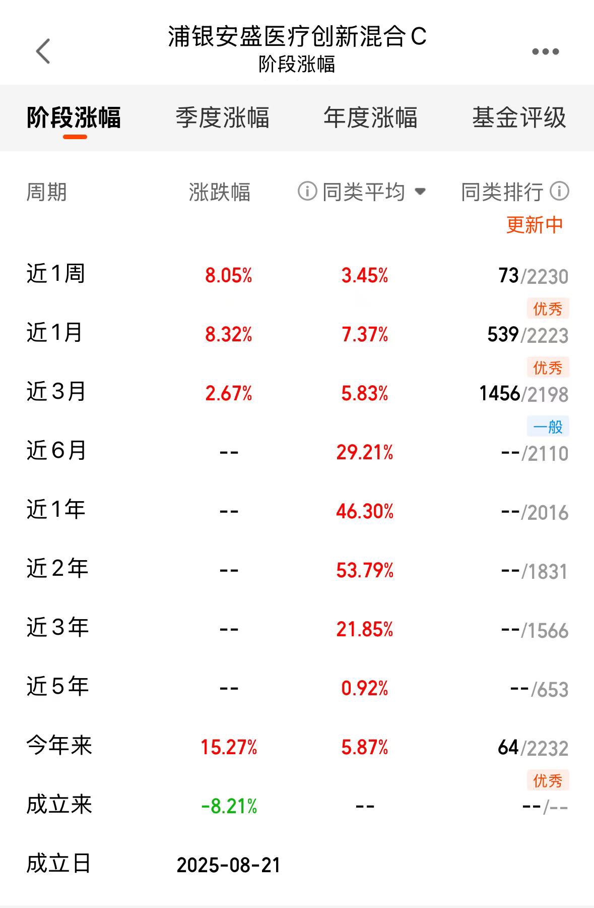 创新药基金爆发!$浦银安盛医疗创新混合C$今日1.77%涨幅,上周一大涨超6%,