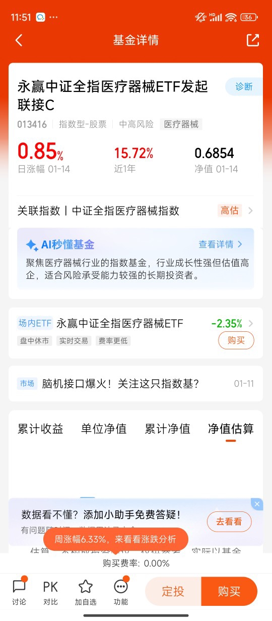 近期脑机接口概念持续发酵,$永赢中证全指医疗器械ETF发起联接C$昨晚拉涨0.8