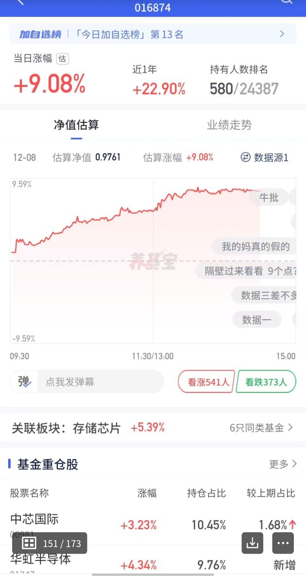 专门对比了一下,今天存储芯片板块平均涨5.8%,广发远见智选C干到9%!同样的风