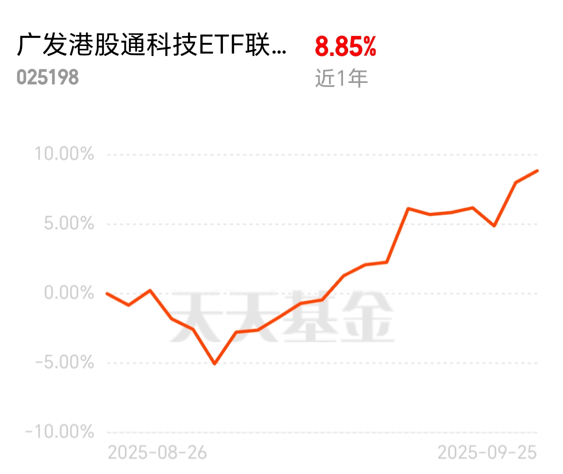 现在还不上车港股后面大红涨得停不下来可没你份,我拿$广发科技025198$有段时间了,基本都是长红的,爽!$广发港股通科技ETF联接C$