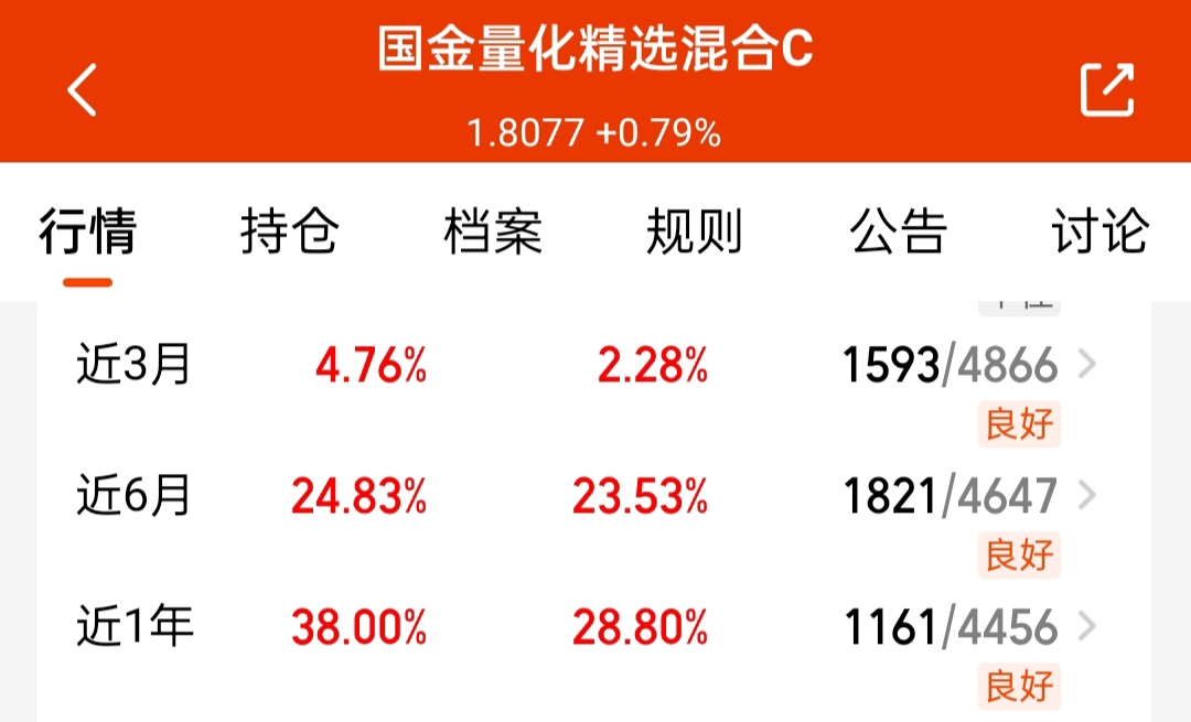 今天又是吃肉行情,还拿了些$国金量化精选混合C$也不错,和量化多因子同策略的,限