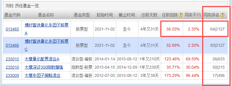 首先,业绩足够惊艳!博时智选量化多因子,在经理刘钊管理的4年期间,累计收益率超50%,别看绝对数据不是太高,对比同类平均,仅仅2.35%,是同类平均的近20倍,同类排名更是遥遥领先,进入前百分之三的位置。