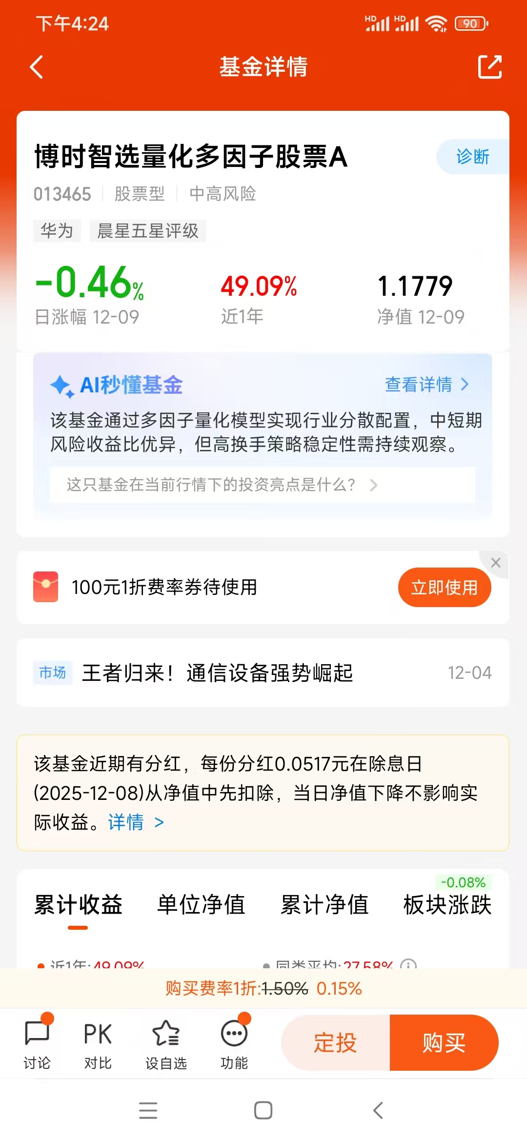$博时智选量化多因子股票A(OTCFUND|013465)$