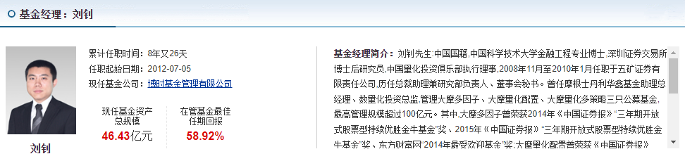 选基金就像选队友,基金经理的实力直接决定了基金的上限。这只基金的基金经理刘钊先生,堪称量化投资领域的“老司机”。中国科学技术大学金融工程博士背景,还有深交所博士后的经历,专业度直接拉满。之前在摩根士丹利华鑫基金时,他管理的基金规模最高超100亿元,还拿过两次金牛基金奖、明星基金奖这些行业重磅奖项,能多次获得权威认可,足以说明他的投资能力经得起市场考验。2020年加入博时基金后,他同时管理多只量化和指数增强基金,经验越来越丰富,有这样一位“懂行又靠谱”的老将掌舵,咱们上班族投资也更放心。
