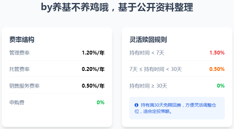 咱们上班族投资基金,最怕手续费吃掉收益,而这只基金的费率真的太良心了。管理费率1.20%/年、托管费率0.20%/年、销售服务费率0.50%/年,在同类基金里属于中等偏下水平。更关键的是,它的C类份额没有申购费,而且持有满30天就免赎回费。对咱们来说,平时可以小额定投,发了工资就加一点,既能摊薄成本,又不用心疼申购费;要是遇到市场波动想调整仓位,持有满30天也不用纠结赎回费,灵活度超高,完全不用因为手续费而影响操作决策。