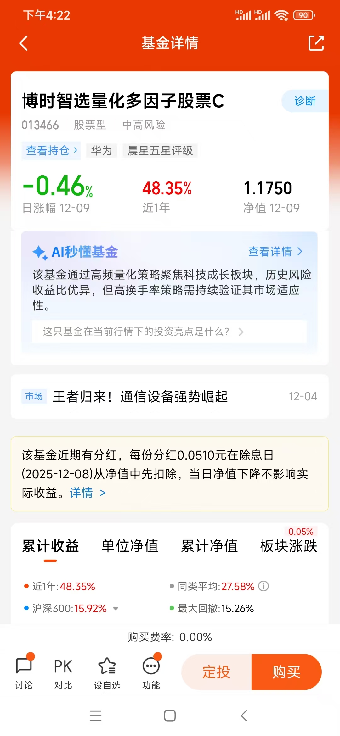 年末收官战已经打响,与其在主动和被动基金之间纠结内耗,不如选择这样一只策略清晰、业绩过硬、性价比超高的主动量化基金。如果大家也想让基金账户在年底再冲一把,又不想承担太大风险,不妨和我一样,重点关注博时智选量化多因子股票C(013466),说不定能给年末投资画上一个完美的句号。(本文仅供参考,不作为投资建议)@博时基金