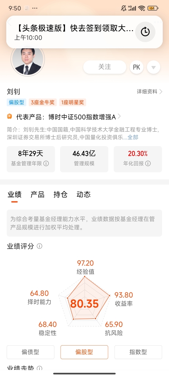 最后也是最关键的,是基金经理。我一直坚信,选基金本质上是选基金经理,尤其是主动管理和量化策略的基金,管理人的能力直接决定了产品的上限。这只基金的基金经理刘钊是金牛奖得主,而我更关注的是他的投资框架:他的多因子模型是如何构建的?选股时更看重哪些因子(价值、成长、质量还是动量)?在市场风格切换时,模型的调整逻辑是什么?通过研究他的过往访谈和产品的持仓变化,我发现他的投资风格偏稳健,注重因子的均衡配置,这和我年末求稳又求超额的需求高度匹配。