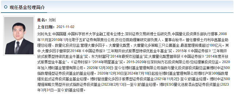 刘钊毕业于中国科学技术大学,拥有金融工程博士学位。这一深厚的学术背景为他在量化投资领域的发展奠定了坚实的理论基础,使他能够熟练运用数学、统计学和计算机科学等多学科知识,构建复杂而有效的量化投资模型。从校园到职场,刘钊的每一步都紧密围绕着量化投资展开,他的职业生涯丰富而精彩。他曾担任摩根士丹利华鑫量化投资总监,在这个国际化的金融平台上,他积累了丰富的实战经验,深入了解了国际量化投资的前沿理念和先进技术。如今,他担任博时基金指数与量化投资部投资副总监,凭借着卓越的投资能力和领导才能,带领团队在量化投资领域不断探索创新。