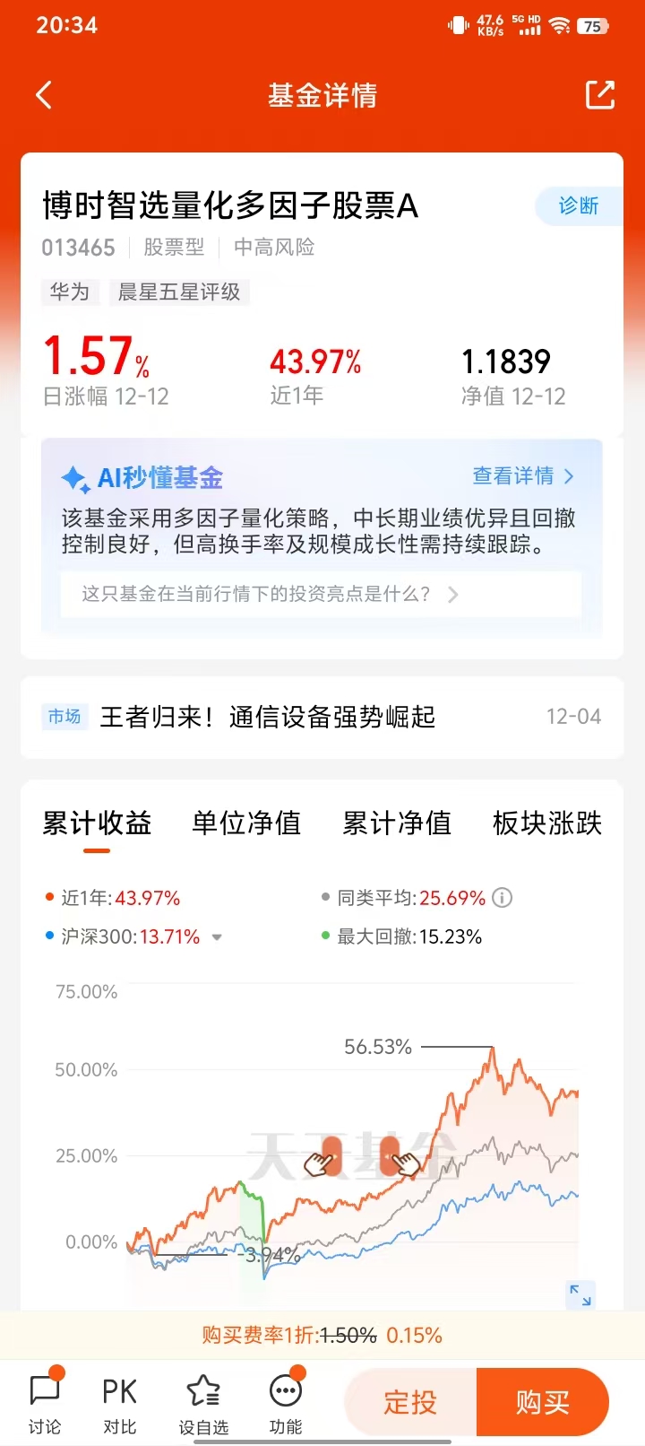 年末的市场犹如一场充满变数的棋局,风格切换频繁,波动加剧,为投资者带来了诸多挑战,同时也蕴含着丰富的机遇。博时智选量化多因子股票 C 在这样的市场环境中,虽然近一周收益率为 - 1.43%,出现了短期回调,但这恰恰为投资者提供了一个绝佳的布局窗口。