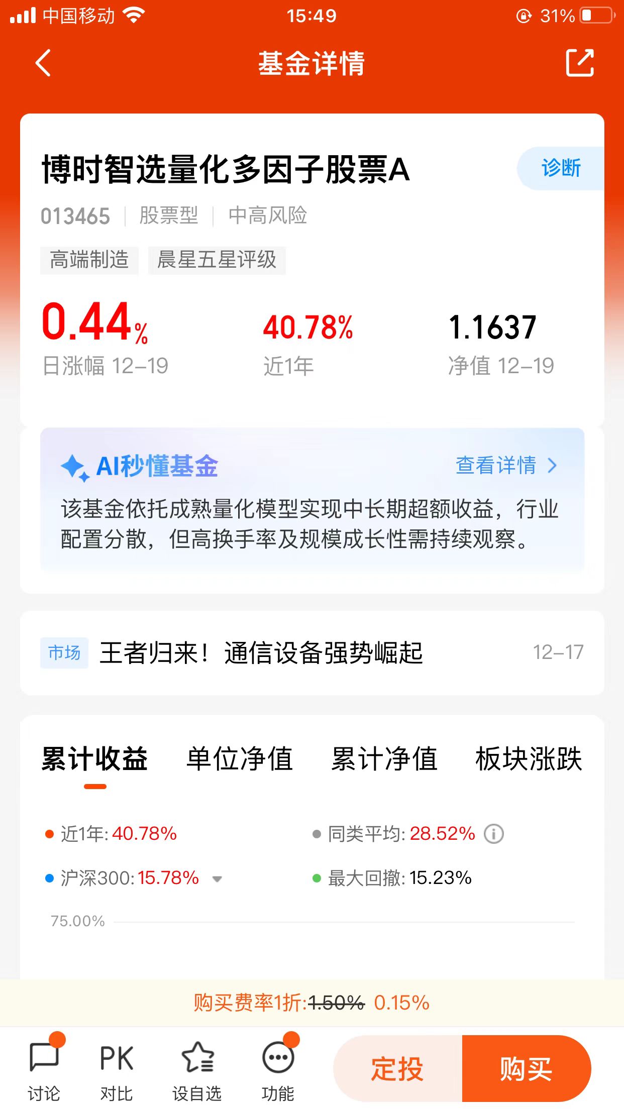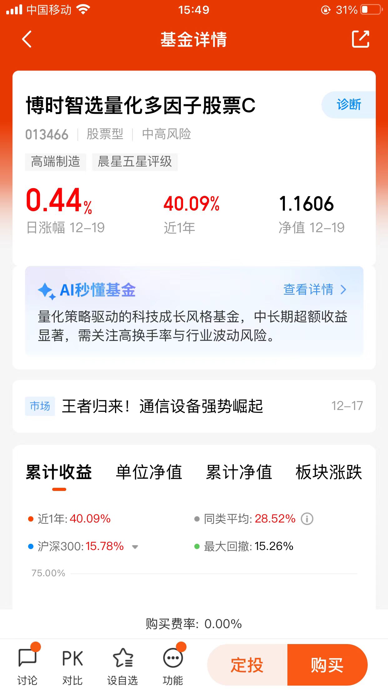 截至2025年12月,博时智选量化多因子C基金的单位净值约为1.18元,成立以来累计净值增长率为52.14%。结合当前市场环境,该基金的投资价值体现在: