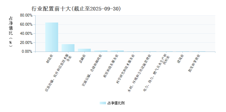 2025年Q3:前十大重仓股中,信息传输、软件和信息技术服务业占比4.04%,制造业占比57.74%,金融业占比5.12%