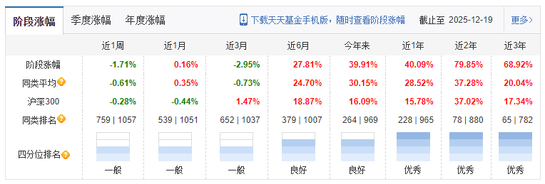 2025年:收益率39.91%(截至12月19日),同类排名264/969(前24%)