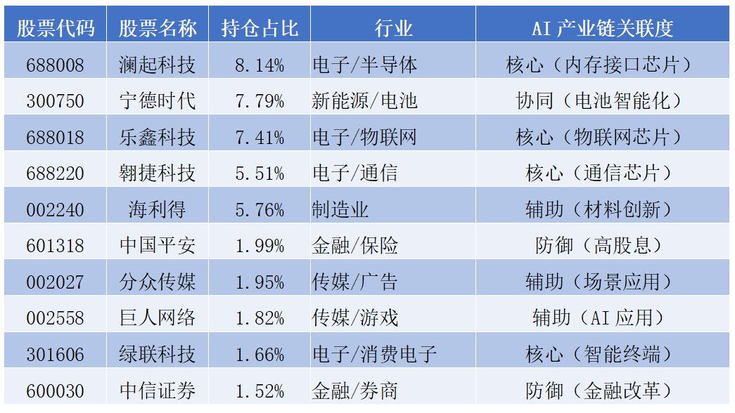 在2025年四季度,基金高度聚焦新质生产力相关领域 ,特别是AI产业链,这一布局与国家政策导向高度契合。