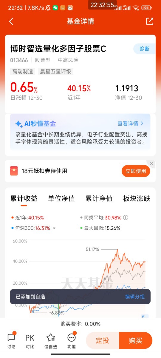 总结:博时智选量化多因子股票C凭借其多因子量化策略和优秀的业绩表现,在当前市场环境下具备配置价值。投资者应结合自身风险承受能力,采用定投+长期持有的策略,合理控制仓位,分散投资风险,追求长期稳健收益。
