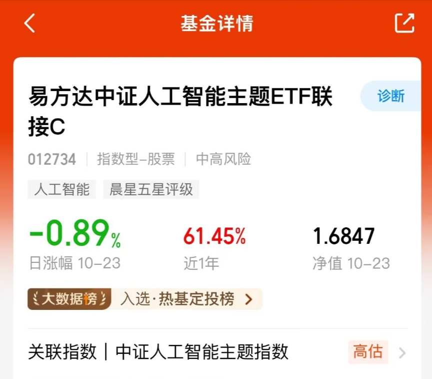 科技赛道势头正猛,人工智能涨幅领先,这波行情要拿捏$易方达中证人工智能主题ETF联接C$