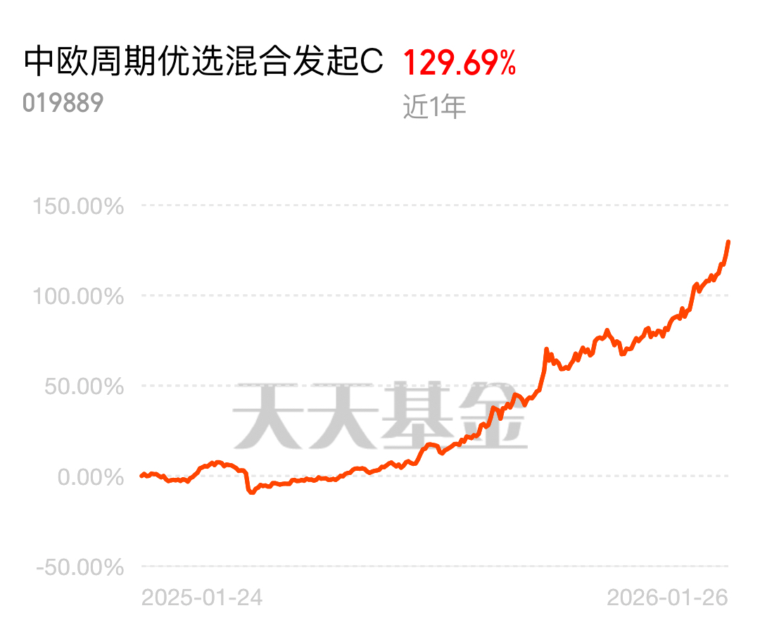 $中欧周期优选混合发起C$在轮动市场里太能打了,近1年收益129.69%,现在市