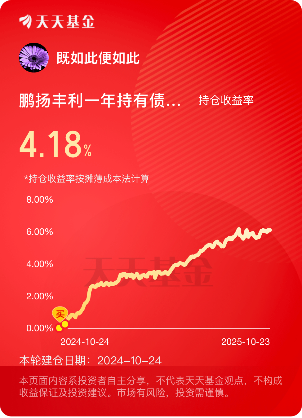 $鹏扬丰利一年持有债券A$ #晒收益#