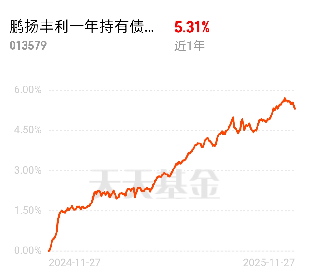 各阶段业绩表现优秀,有点小波动正常,长期业绩还是很好的。$鹏扬丰利一年持有债券A