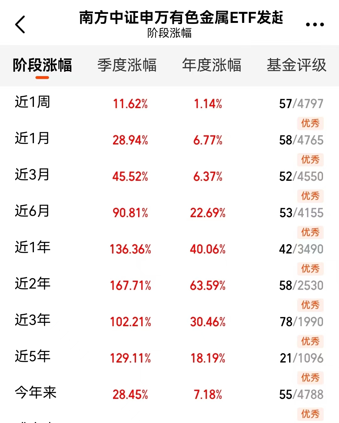 我又加仓了$南方中证申万有色金属ETF发起联接C$(004433),主要是看好有色这轮的持续性。最近市场行情不错,价格昨天又涨到了历史最高位,想想它去年就涨了92%,今年的势头丝毫未减。为什么眼下还是机会?因为推动上涨的核心因素——供需矛盾——并没有缓解的迹象。新兴领域的扩张持续消耗金属资源,而供应端的反应往往滞后且充满不确定性。整个经济大环境的回暖也为金属消费提供了基础。这只基金近一年136%的回报率,足以证明其抓住了这波机会。我认为当前只是大周期行情的初期阶段,后续发展更值得关注,所以我又买了。#黄金逼近5600美元 该如何应对?#