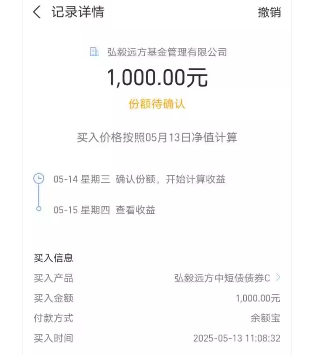 家人们,昨天债市那震荡的行情真让人有点小紧张,弘毅远方中短债券C虽碎蛋了,可它长期业绩超优秀,回撤控制得超棒,比同类基金厉害多了!我寻思着这短期波动怕啥,长期才是关键,果断在今天加仓上车了,期待后续能给我带来更多收益。