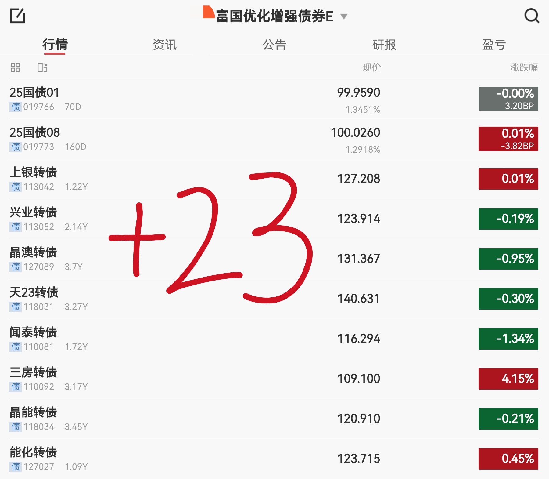 $广发双债添利债券E(OTCFUND|009267)$$国泰嘉睿纯债债券C(OTCFUND|016604)$$华泰保兴安悦债券C(OTCFUND|020741)$$国金惠盈纯债C(OTCFUND|006760)$$富国久利稳健配置混合E(OTCFUND|019370)$$长城短债C(OTCFUND|007195)$$富国优化增强债券E(OTCFUND|018980)$