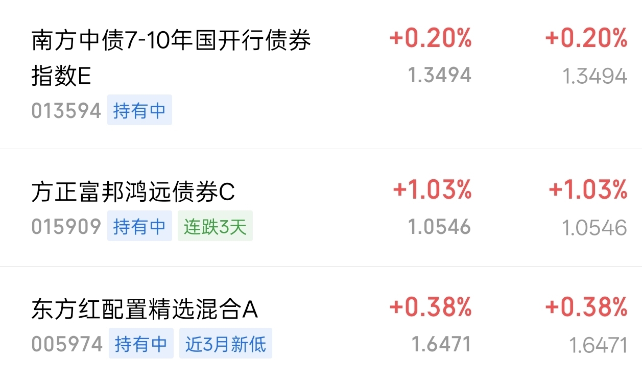 股债双红的日子不多,今天刚好赶上。银行持续买入,债市午后更强了。我的鸿远收下10