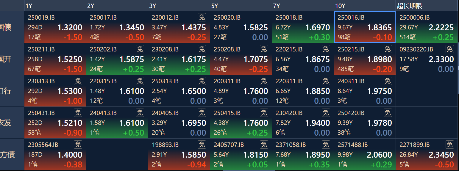 二、十年期国债收益率:1.8365 -0.001%(国债收益率越涨,债市越跌,两者反向关系)