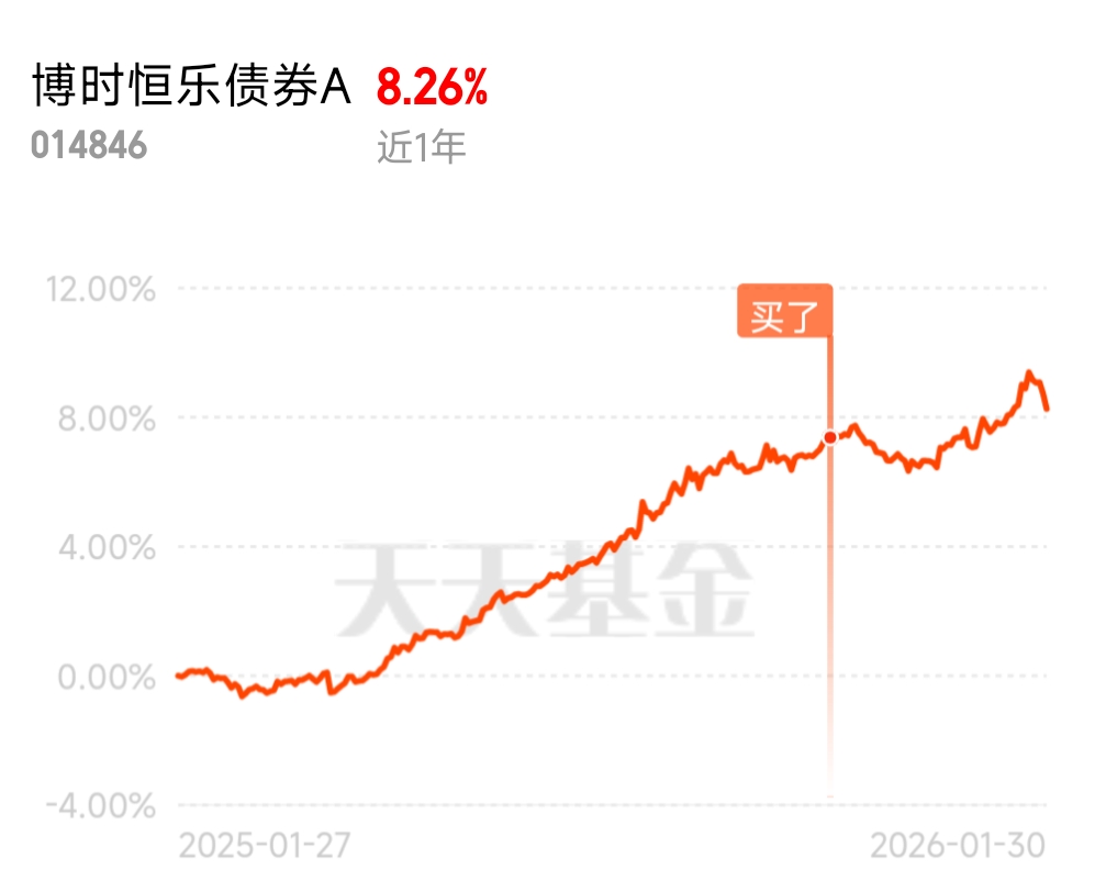 最近股市波动加剧,指数回到4000点,债市倒是一路走稳。$博时恒乐债券A$ 债券是压舱石,股票用来博收益,能攻也能守。近一个涨幅超过1.1%,一年下来收益已有8.26%,长期表现很出色。最近债市一大核心利好就是隐性债务置换政策的持续推进,2026年继续落实存量隐性债务置换,降低债务利息成本,同时专项债“自审自发”试点深化,城投债融资成本与门槛双降,这对于配置了高等级城投债的恒乐来说,无疑是重大利好。城投债在化债政策支撑下,财务压力逐步缓解,信用利差有望进一步收窄,这基精准筛选高资质城投债标的,不仅能获得稳定的利息收益,还能捕捉到信用利差收窄带来的波段机会。而且它的权益仓精准踩中了金融板块的风口!1月以来,随着春节消费旺季临近,金融板块迎来估值修复行情,这基的权益仓里重仓了中国平安、中信证券等龙头个股。最近金融板块的利好消息不少,一方面春节前市场资金面宽松,券商板块受益于交易活跃度提升,中信证券作为行业龙头,业绩确定性极强;另一方面,保险板块随着消费复苏,保单销售回暖,中国平安、中国太保等标的估值处于历史低位,上涨空间巨大。尤其是1月北向资金净流入消费和金融板块超150亿元,外资的认可也给这些标的注入了强心剂。眼下的震荡,感觉就是在为下一波行情在做准备。#2月基金投资策略#