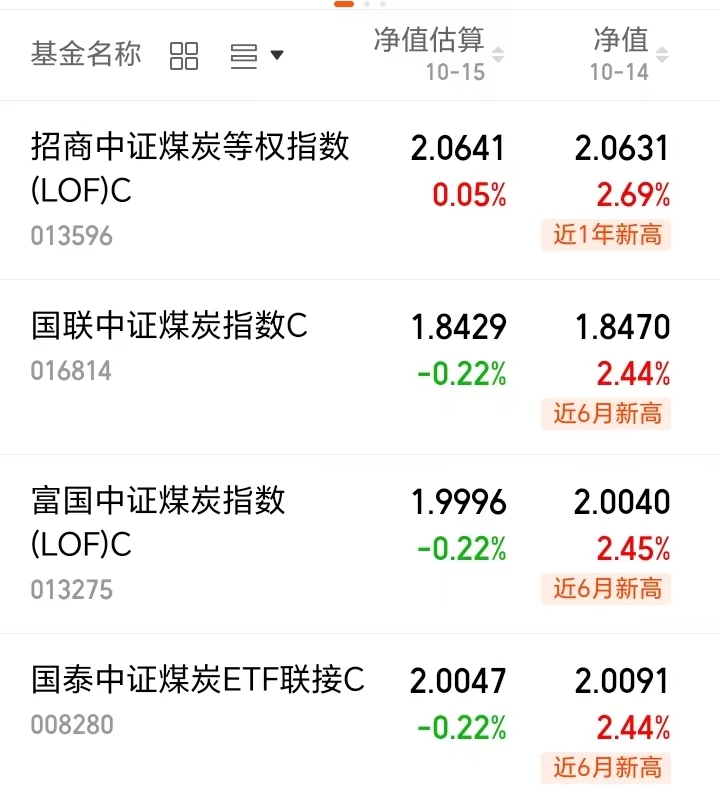 $国联中证煤炭指数C(OTCFUND|016814)$昨天上涨2.44%,近6个月上涨14.29%;