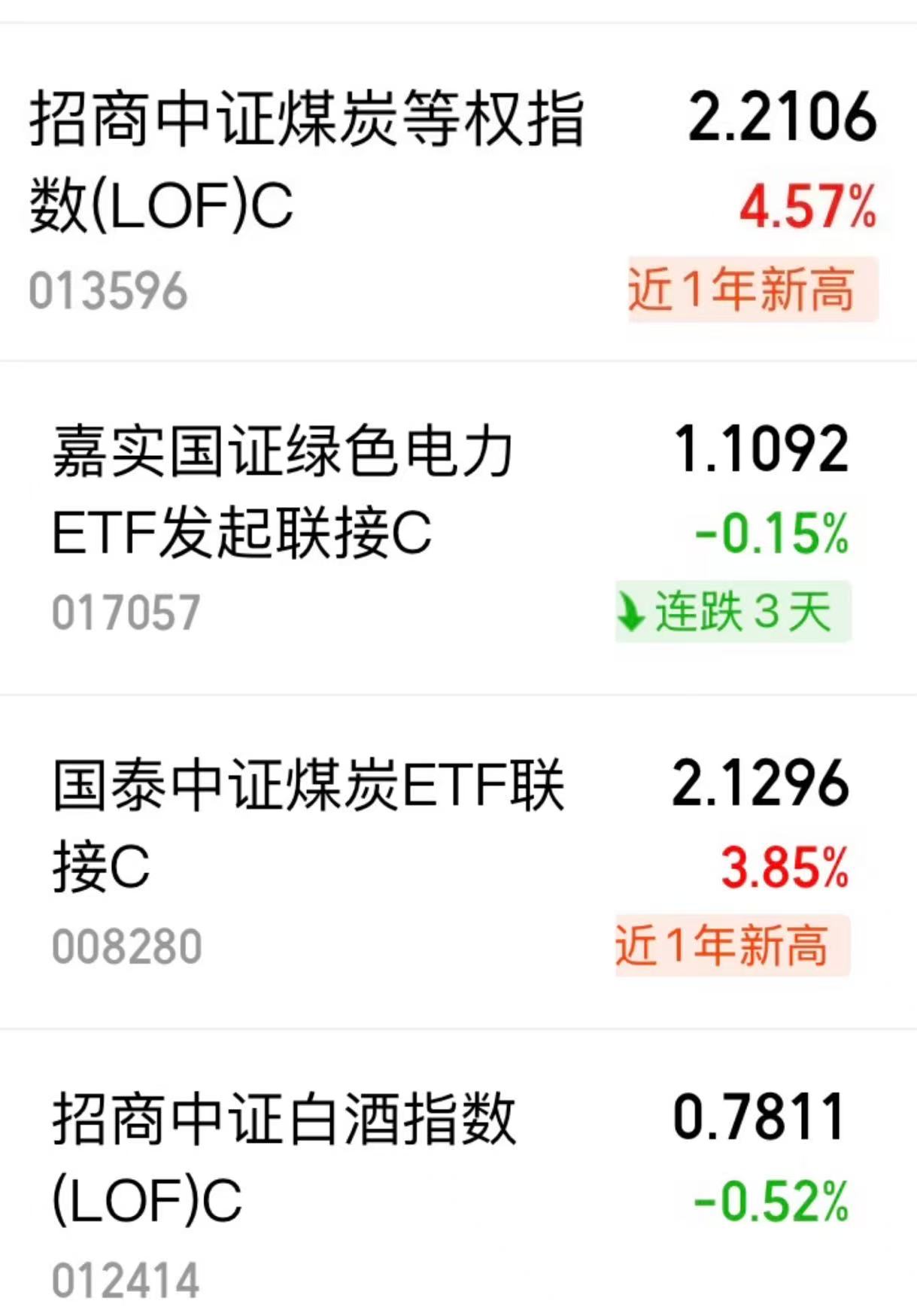 $招商中证煤炭等权指数(LOF)C(OTCFUND|013596)$昨天上涨4.57%