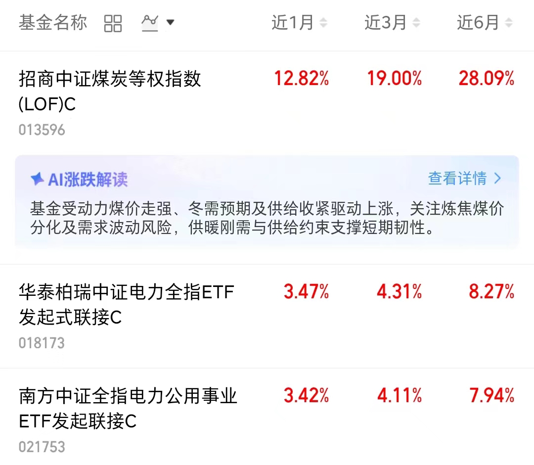 友友们,天气越来越冷了,寒冷的冬天煤炭板块持续上涨,昨天$招商中证煤炭等权指数(LOF)C(OTCFUND|013596)$上涨4.57%呢,近一个月涨幅12.82%,业绩优秀。
