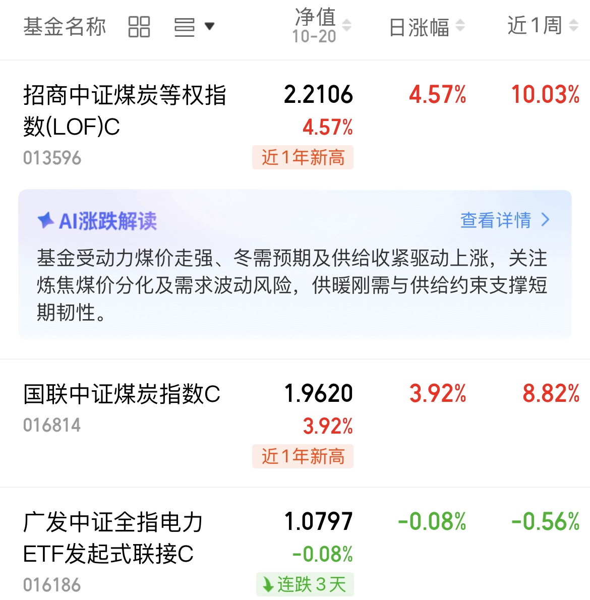 $招商中证煤炭等权指数(LOF)C(OTCFUND|013596)$昨天上涨4.57%