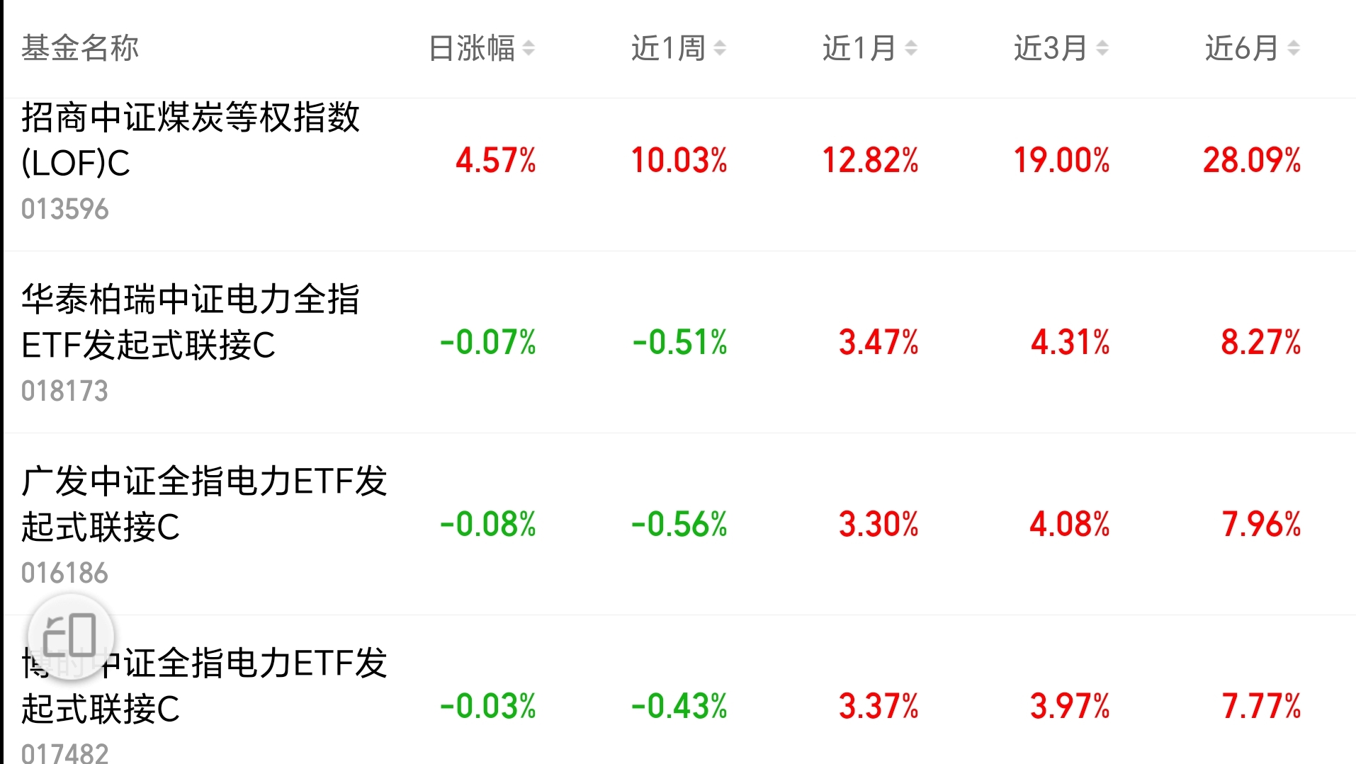 $招商中证煤炭等权指数(LOF)C(OTCFUND|013596)$近一个月上涨12.82%;