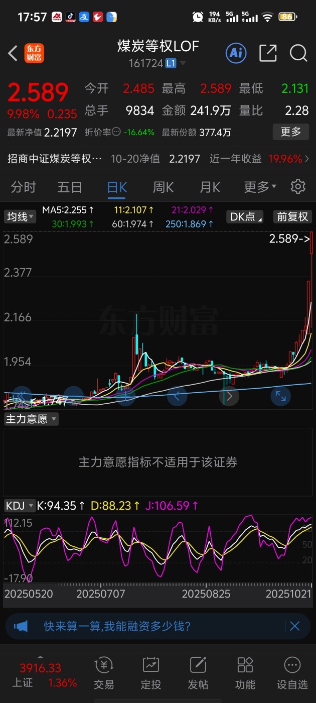 场内的招商煤炭等权lof今天涨停了场外的还是跌的?怎么回事?
