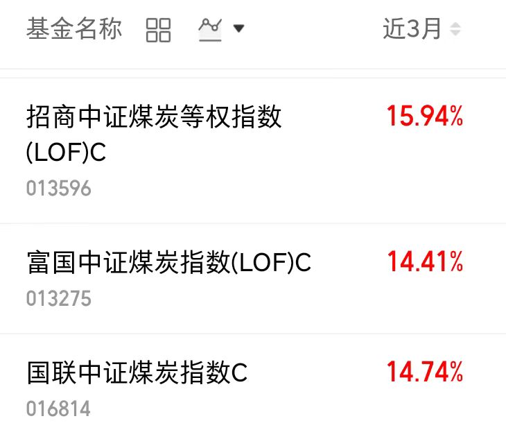 $招商中证煤炭等权指数(LOF)C(OTCFUND|013596)$近三个月上涨15.94%$富国中证煤炭指数(LOF)C(OTCFUND|013275)$近三个月上涨14.41%