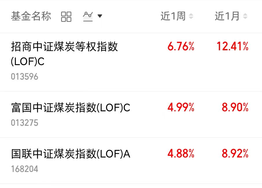 $国联中证煤炭指数(LOF)A(OTCFUND|168204)$近一周上涨4.88%