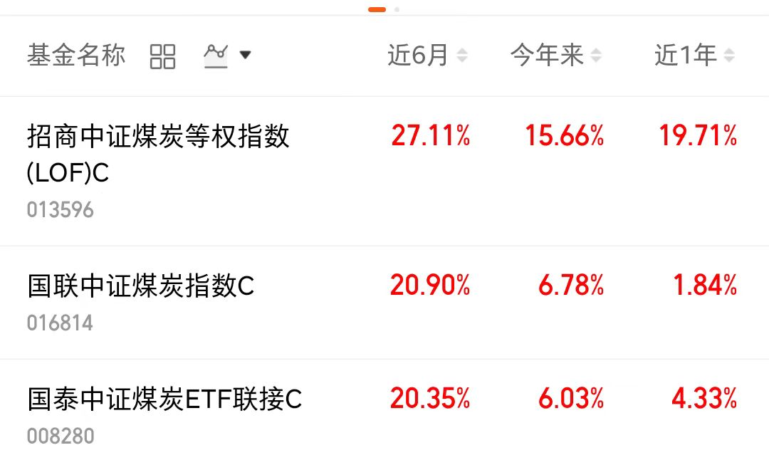 $招商中证煤炭等权指数(LOF)C(OTCFUND|013596)$近半年上涨27.11%
