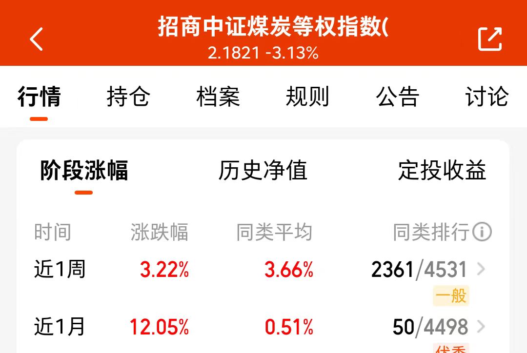 宝子们,今年的冬天来的有点早啊。寒冷的冬季里煤炭板块火热的上涨行情还是有点温暖的,在供暖与储能的双重需求增强下,煤炭板块持续上涨。$招商中证煤炭等权指数(LOF)C(OTCFUND|013596)$近一周上涨3.22%,近一个月上涨12.05%,涨幅可观,大家也关注一下吧。