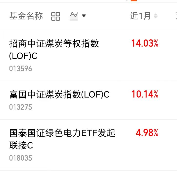 $招商中证煤炭等权指数(LOF)C(OTCFUND|013596)$近一个月上涨14.03%$富国中证煤炭指数(LOF)C(OTCFUND|013275)$近一个月上涨10.14%