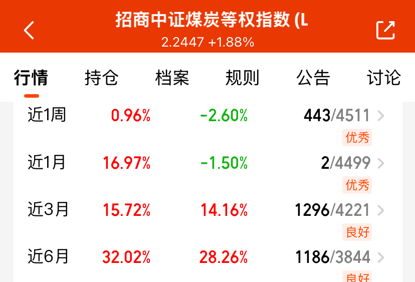 近期市场行情波动加剧,感觉涨跌起伏都比较大的,所以均衡配置还是有必要的,其中$招商中证煤炭等权指数(LOF)C(OTCFUND|013596)$昨天收涨+1.88%,近一月涨幅16.97%,近三月涨幅32.02%,整体表现不错,优于同类基均值,它自带红利属性,比较适应当下行情走势呢!$招商中证煤炭等权指数(LOF)E(OTCFUND|016347)$$招商中证白酒指数(LOF)C(OTCFUND|012414)$#A股低开高走!国际资本看好中国资产#